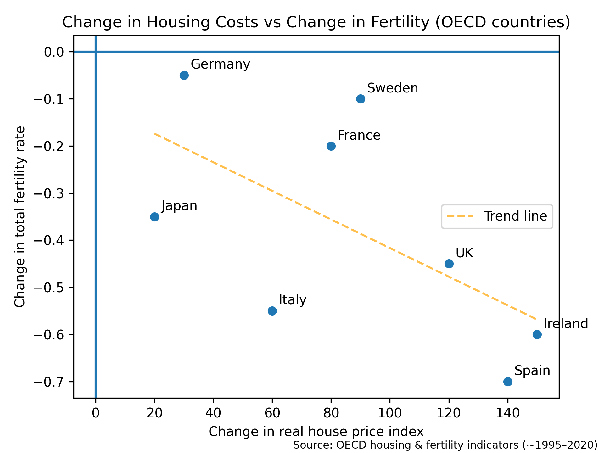 Analysis of housing cost inflation impact on fertility trends.